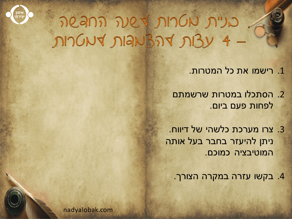 בניית מטרות לשנה החדשה – 4 עצות להצמדות למטרות