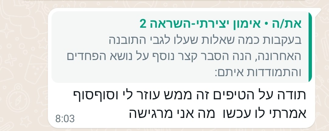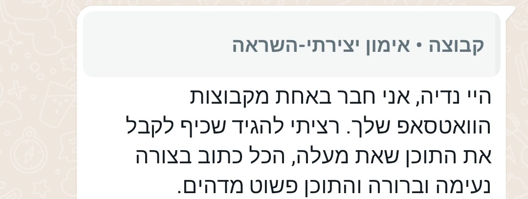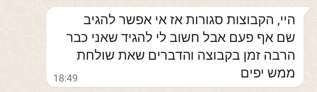 לא ניתן להגיב בתוך הקבוצה עצמה, אבל כן ניתן להגיב לי באופן אישי בוואטסאפ על ההודעה ששלחתי.