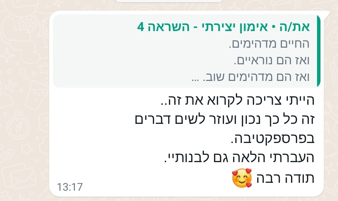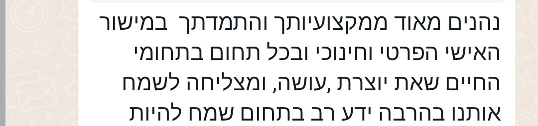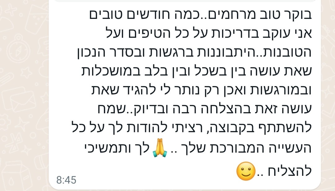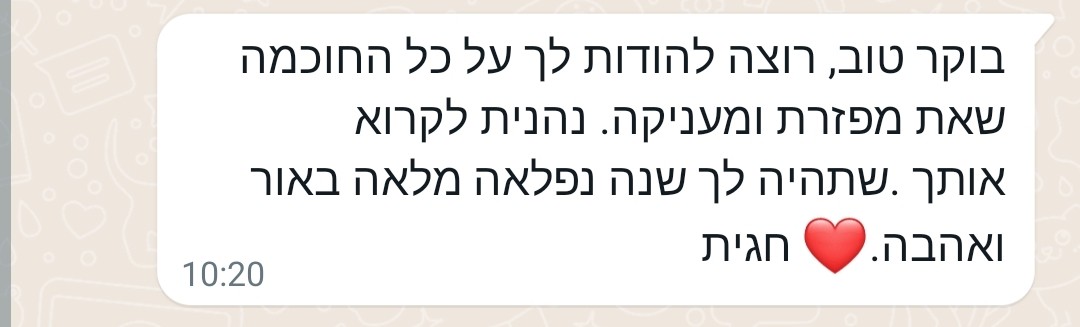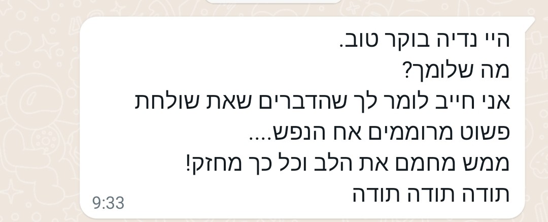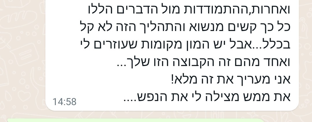 רציתי לומר לך תודה על הקבוצה, על ההשקעה והתבונה שאת מנחילה בכולנו.
