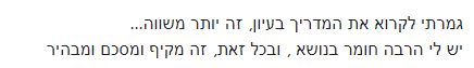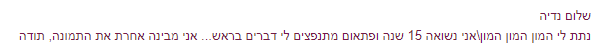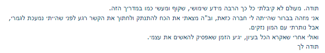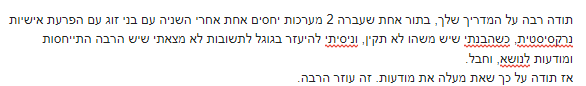 תודה שאת שופכת כל כך הרבה אור על הנושא הזה. עזר לי מאוד