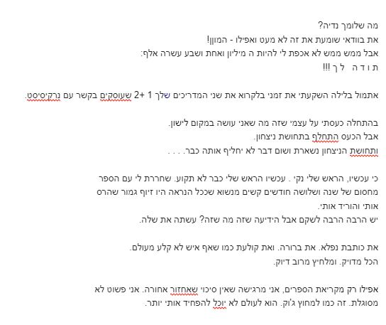 כתבו לי כאן את השאלה, ואתייחס אליה במפגש הקרוב