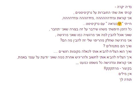 “אל תתחילי ויכוח עם נרקיסיסט.