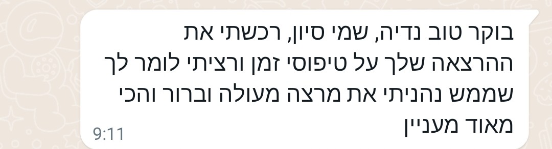 “היי נדיה, הדרכת אותנו דרך אפיקים לפני שבוע ואני רוצה להגיד שממש עזרת לי.